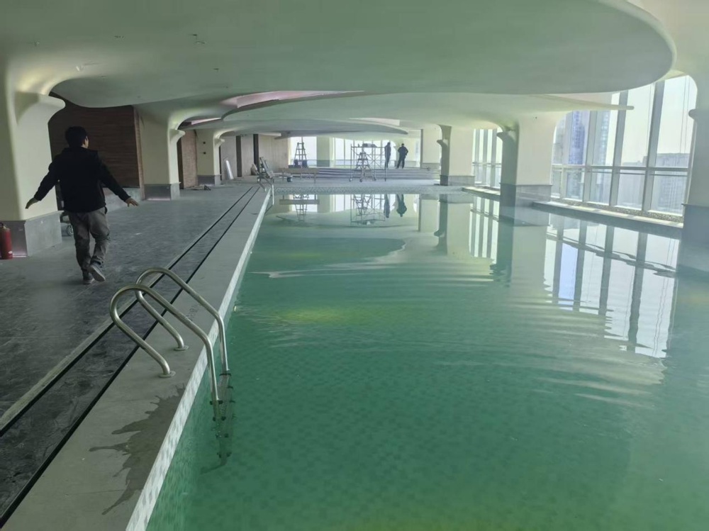 Следвайки същия ориенталски естетически дизайн, зоната на басейна разполага с панорамни прозорци от пода до тавана с директна гледка към река Xiangjiang и остров Ориндж. През нощта гостите могат да се насладят на градските светлини и фойерверки над Orange Isle, което го прави едно от популярните места за снимки на хотела.